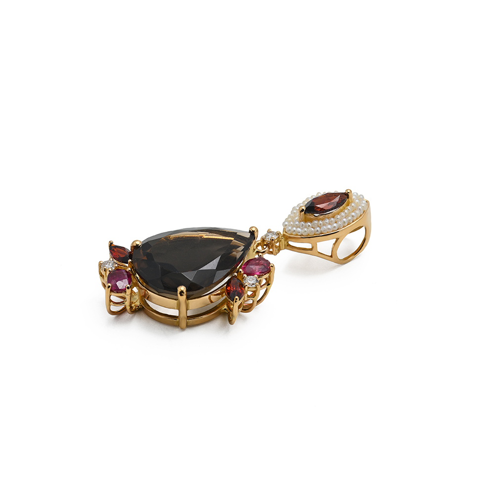 22K Yellow Gold (5.076 grams), VS, G Color Diamond (0.104 carat), Precious Stones (2.335 grams), and Natural Bahraini Pearls (0.079 grams) approximately.